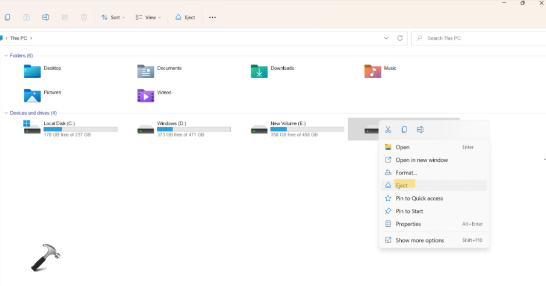 2.Ensuite, faites un clic droit sur le matériel amovible que vous souhaitez supprimer. Après cela, sélectionnez leÉjecteroption dans le menu contextuel.