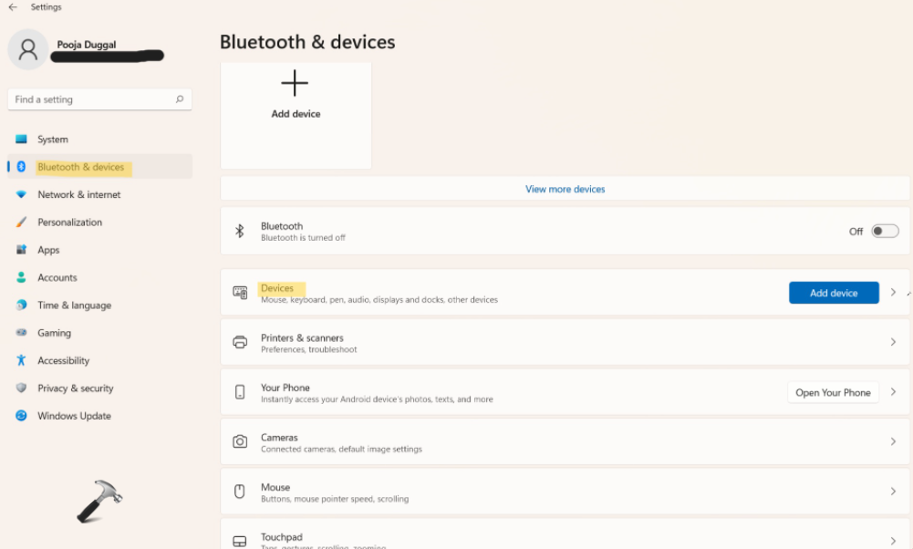 1.OuvrirParamètreset allez auBluetooth et appareilsEnsuite, sélectionnez leAppareilsoption présente à droite.
