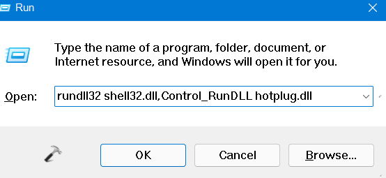 rundll32 shell32.dll,Control_RunDLL hotplug.dll