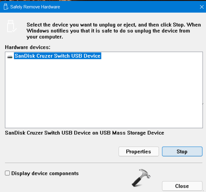 2.Choisissez le matériel amovible que vous souhaitez supprimer en toute sécurité, puis sélectionnez leArrêtbouton.