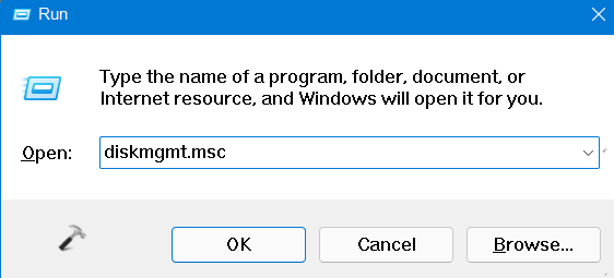 1.OuvrirCouriret tapezdiskmgmt.mscdans la boîte de dialogue Exécuter pour ouvrir Gestion des disques.