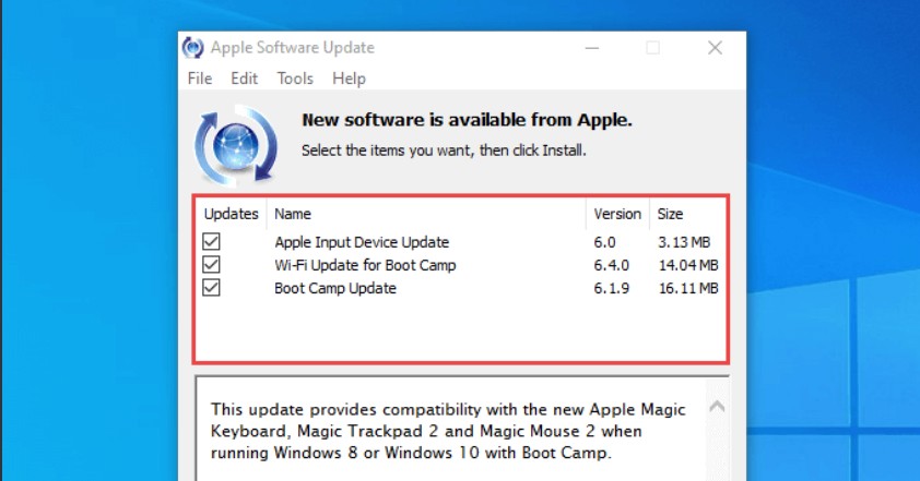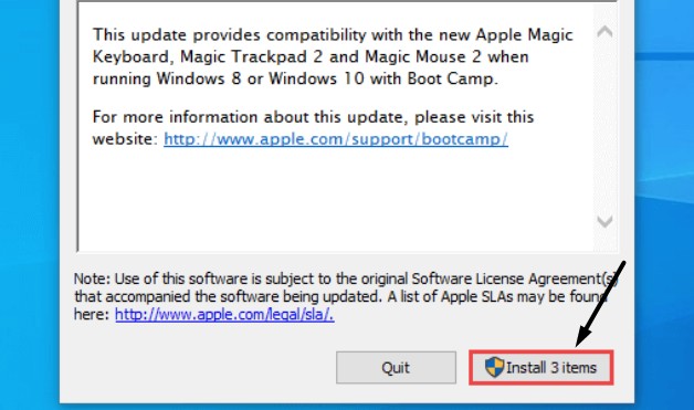 5.Après avoir coché la case, cliquez surInstaller des élémentspour installer les pilotes du Magic Keyboard sur votre PC.