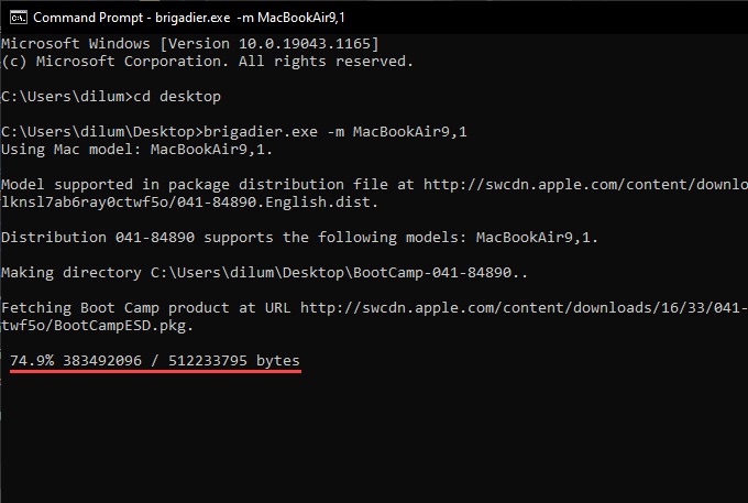 5.Après avoir exécuté la commande ci-dessus, vous verrez qu'elle a commencé à télécharger le logiciel Boot Camp sur votre PC. Vous devez maintenant attendre la fin du processus. Une fois téléchargé, vous verrez leCamp d'entraînementdossier sur votre bureau, alors déplacez-vous là-bas et ouvrez-le.