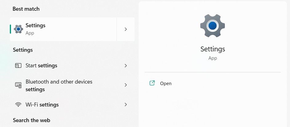 3.SélectionnerParamètresde laMeilleure correspondancedans les résultats pour ouvrir laApplication Paramètressur votre PC Windows 11. Vous pouvez également accéder aux paramètres de votre PC en utilisant leWindows + jeraccourci.