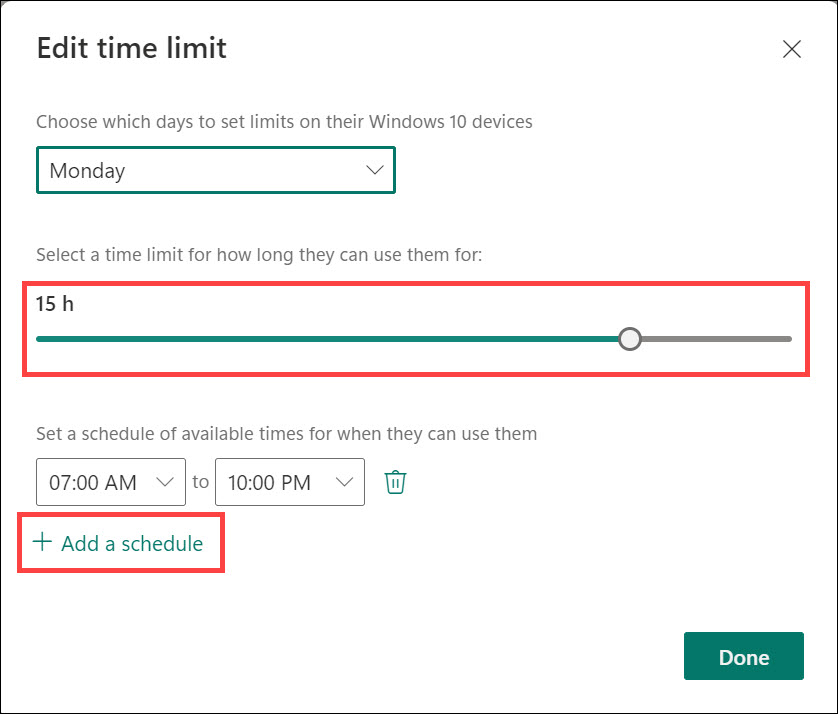 4.Modifiez la limite de temps ou ajoutez un horaire pour ce jour particulier.