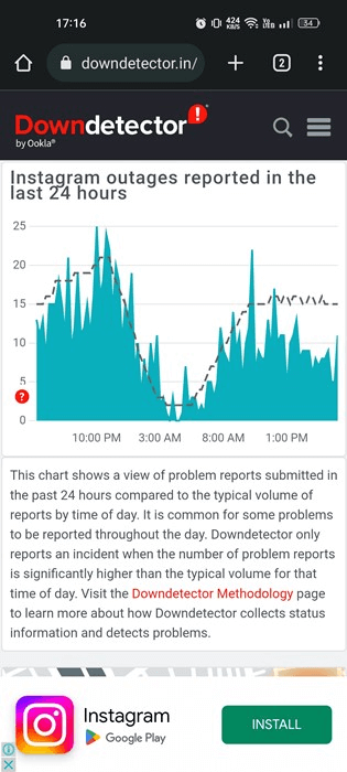 Si vous remarquez que les Stories Instagram se répètent, cela peut signifier que les serveurs d'Instagram rencontrent des problèmes. Vérifiez si Instagram est en panne. Si tel est le cas, vous pourriez rencontrer des problèmes tels que la déconnexion, l'impossibilité de visualiser des photos/vidéos et des problèmes de chargement de vidéos en bobine.