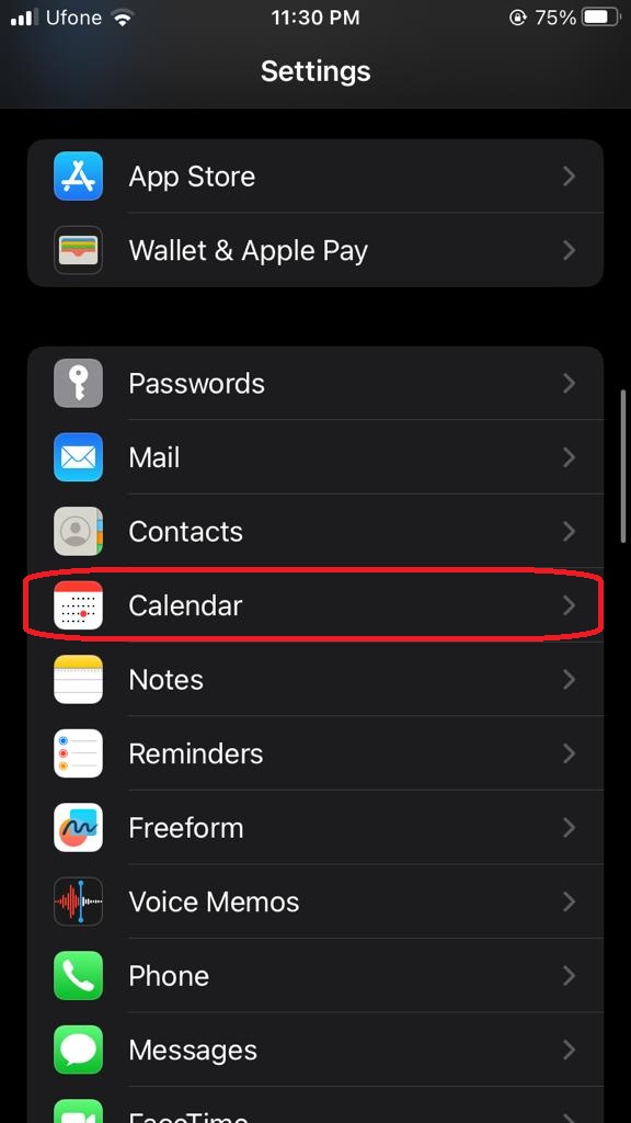 - Faites défiler vers le bas et appuyez surCalendrier.