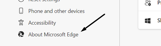 4.Ensuite, sélectionnez leÀ propos de Microsoft Edgeoption dans la barre latérale gauche pour ouvrir leÀ propos de la sectionde l'application Microsoft Edge.