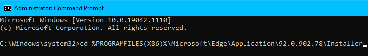 cd/cd %Program Files (x86)%MicrosoftEdgeApplication(EdgeVersion)InstallerNote:Vous devez remplacer leVersion Edgetexte avec leversion actuelle de l'application Microsoft Edge.Vous pouvez vérifierÉtape 4pour référence.