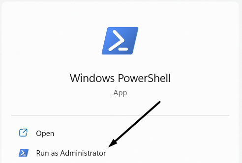 2.Maintenant, sélectionnezExécuter en tant qu'administrateurpour lancer Windows PowerShell avec des privilèges administratifs.