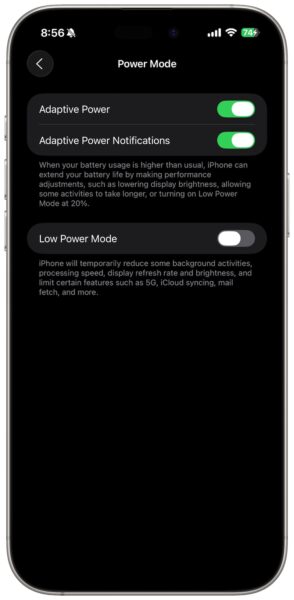 Les anciens modèles exécutant iOS 26 ne prennent pas en charge Adaptive Power.