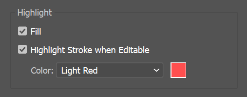 SiMettre en surbrillance le trait lorsqu'il est modifiableest cochée, les parties d'un chemin qui peuvent être modifiées seront tracées dans la couleur sélectionnée. Vous devez également avoirEn mode fusion, cliquer sur le trait divise le cheminsélectionnés ci-dessus. Sinon, les segments du chemin ne seront pas modifiables et ne seront donc pas mis en surbrillance.