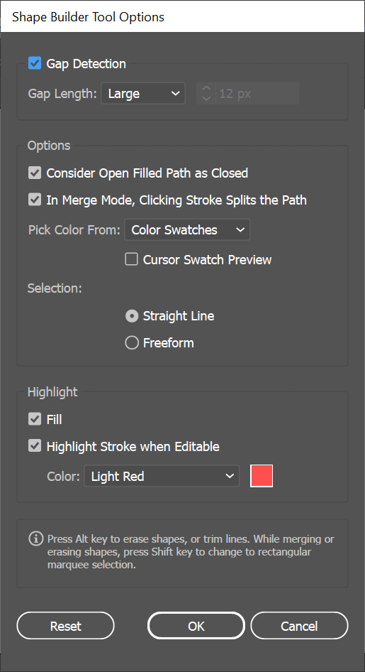 Accédez aux options de l'outil Shape Builder en double-cliquant sur Shape Builder dans la barre d'outils.