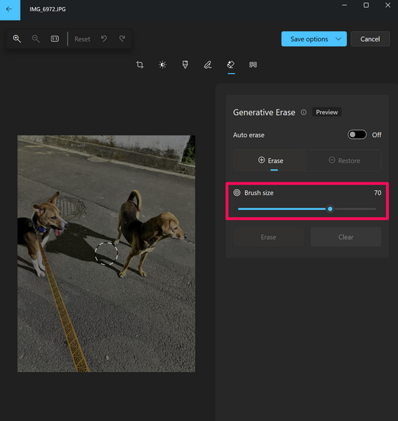 Maintenant, Microsoft a finalement ajouté la fonctionnalité à son application Photos sous Windows et l'appelle Effacement génératif. Il s'agit essentiellement d'une extension de la fonctionnalité Spot Fix existante dans l'application Photos et permet aux utilisateurs de supprimer les objets indésirables des images. Les espaces créés par les objets supprimés sont automatiquement remplis avec les résultats générés par l'IA pour conserver un aspect réaliste des images.