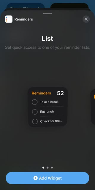 4.Faites défiler la liste des widgets disponibles pour trouver celui que vous souhaitez ajouter. Vous pouvez également rechercher les widgets à l'aide de la barre de recherche. Par exemple, j'ajoute leRappelswidget.