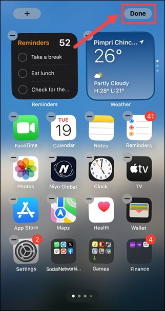 8.Personnalisez maintenant la position du widget sur l'écran et appuyez sur le boutonFaitoption dans le coin supérieur droit.