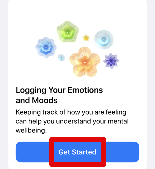 3.Faites défiler vers le bas et appuyez surCommencersous Enregistrer vos émotions et votre humeur. Cela lancera le questionnaire sur votre iPhone.