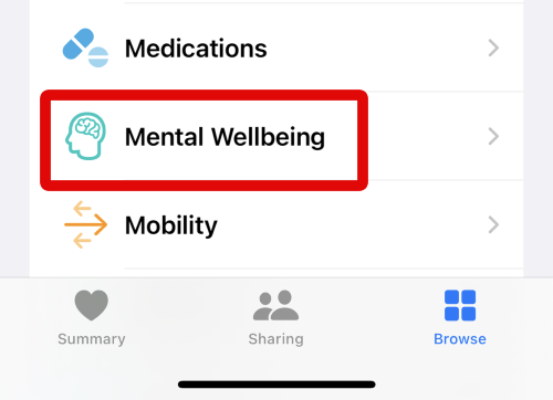 2.Maintenant, appuyez surBien-être mentalsous Catégories de santé.