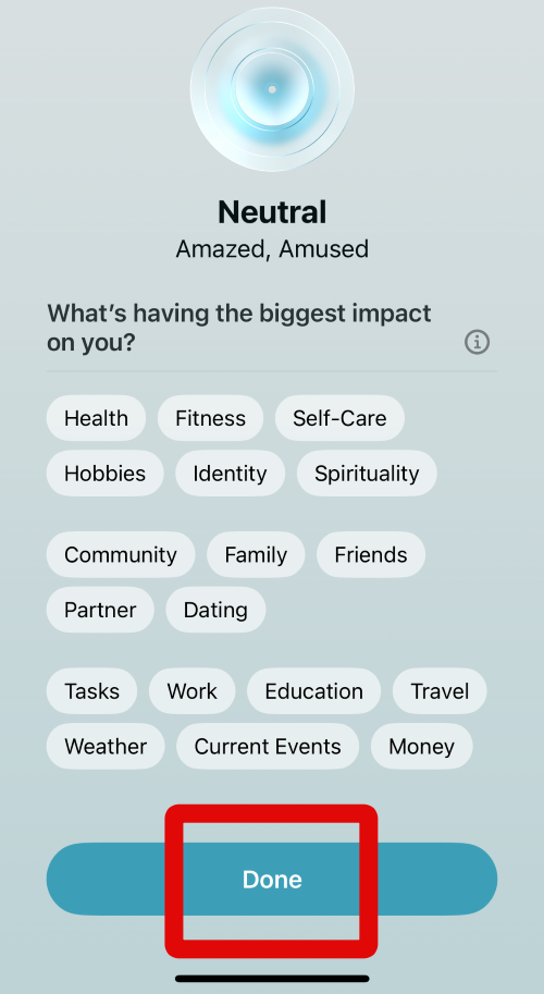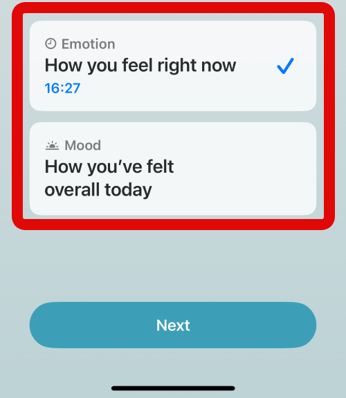 5.Appuyez et choisissez Comment vous vous sentez en ce moment si vous souhaitez enregistrer votre humeur actuelle. Appuyez et choisissez Comment vous vous sentez globalement aujourd'hui si vous souhaitez enregistrer votre humeur générale pour la journée.