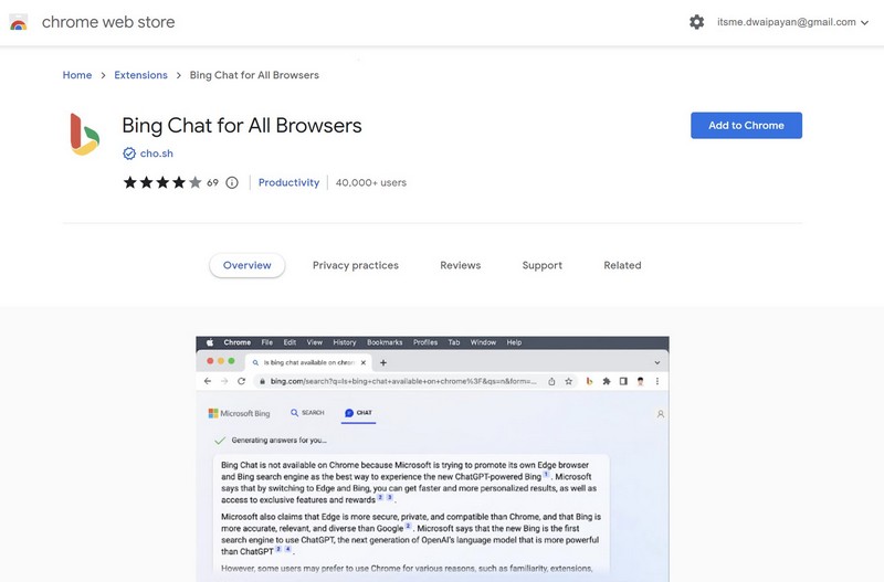 1.Ouvrez lePage Chrome Web Store pour l'extension BingAIvia le lien fourni.