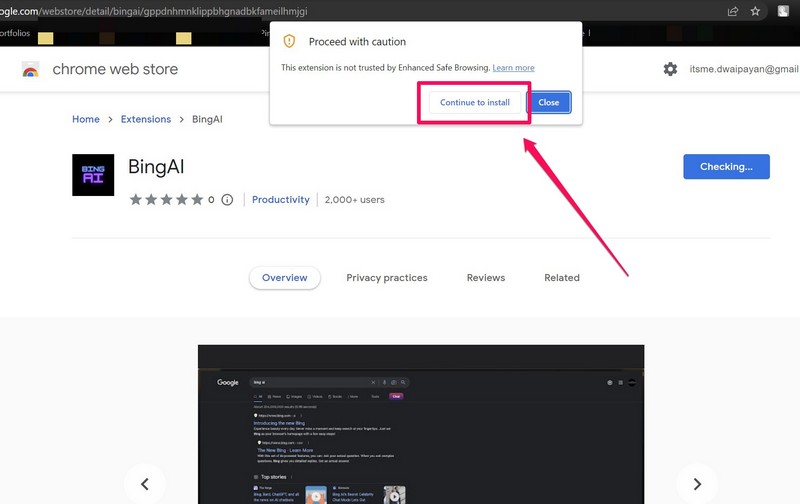 1.Simplementallez sur le lien fournivia votre navigateur Internet etinstaller l'extensiontout comme vous avez installé l’extension BingAI précédente.