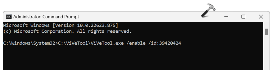 ViVeTool.exe /enable /id:39420424