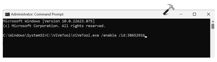 ViVeTool.exe /enable /id:38652916