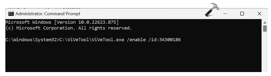 ViVeTool.exe /enable /id:34300186