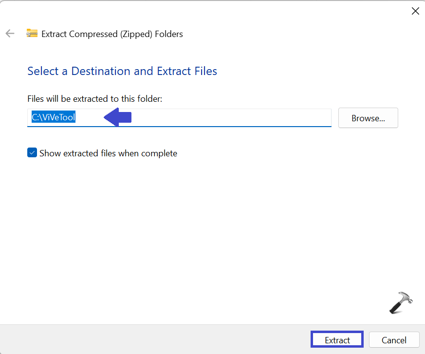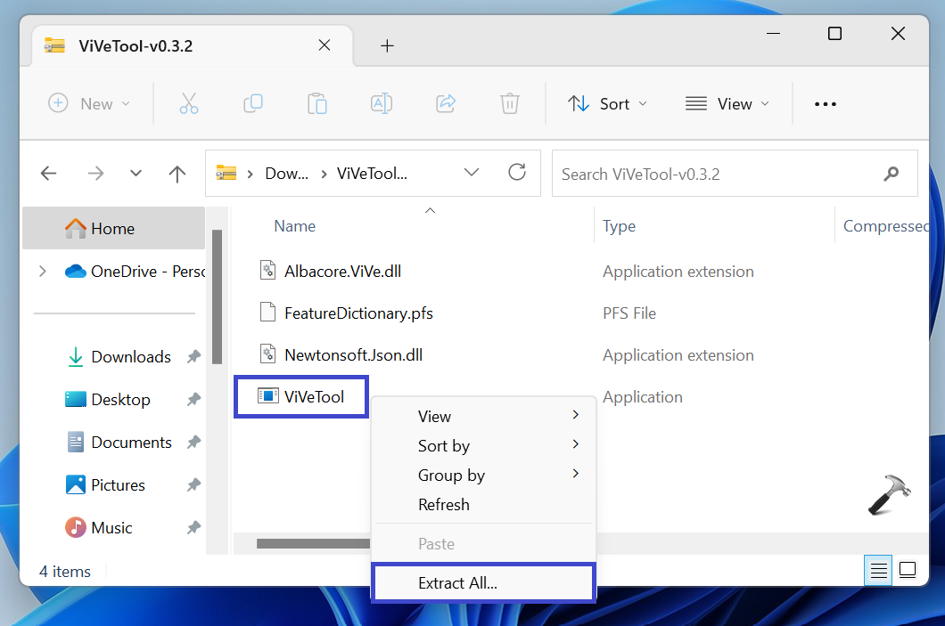 Faites un clic droit sur l'application ViVeTool et sélectionnez « Extraire tout… ».