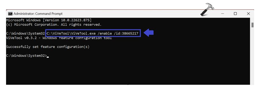 C:ViVeToolViVeTool.exe /enable /id:12345678
