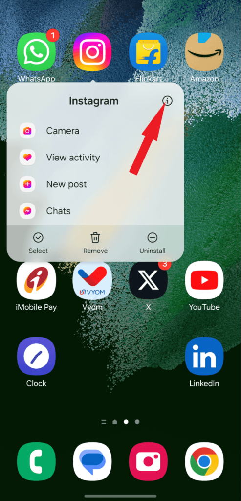 - Appuyez longuement sur l'icône de l'application Instagram pendant une seconde, puis cliquez sur l'icôneInformations