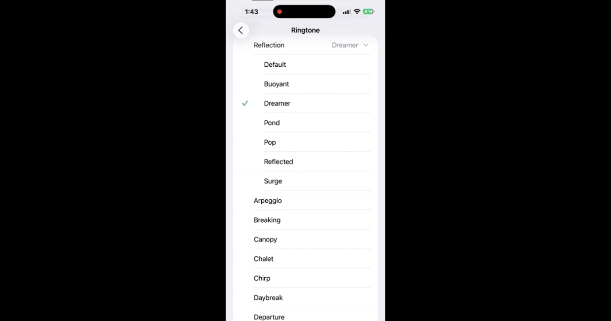 La famille de sonneries « Reflection » s'agrandit avec six nouvelles options : Buoyant, Dreamer, Pond, Pop, Reflected et Surge, élargissant la personnalisation sans nécessiter de tonalités tierces.