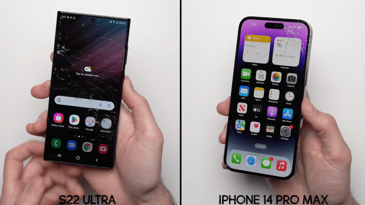 YouTuber @PhoneBuff a effectué un test de chute comparatif de l'iPhone 14 Pro Max de 6,7 pouces par rapport au Samsung Galaxy S22 Ultra pour savoir dans quelle mesure ils se comporteront en cas de chute accidentelle.