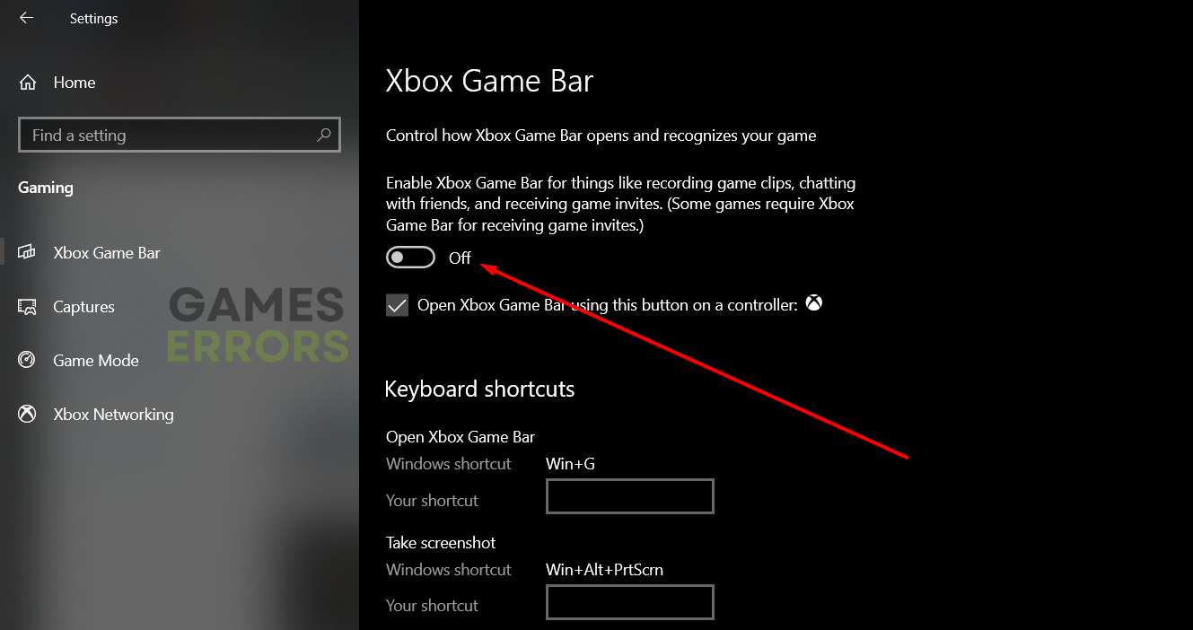 - DésactiverBarre de jeu Xbox.