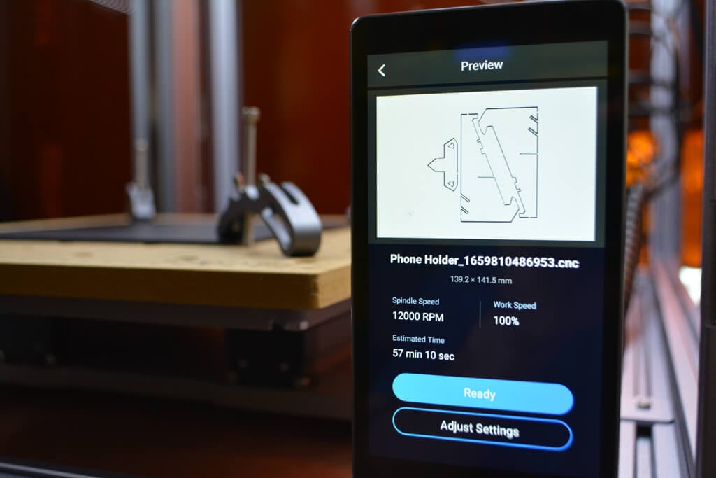 Cela semblait fou de pouvoir utiliser l'usinage CNC pour couper un morceau d'acrylique avec une telle précision dans notre salon, mais le Snapmaker donne l'impression que cela est facile. À l'aide du logiciel Luben, nous avons préparé un exemple de fichier pour un support de téléphone portable.