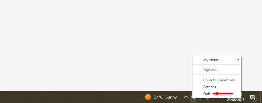 - Fermez les autres applications.Fermez toutes les autres applications de chat vocal comme Discord, Microsoft Teams ou Skype qui pourraient interférer avec votre microphone. Pour ce faire, cliquez avec le bouton droit sur leur icône dans le plateau d'icône et sélectionnezQuitter.