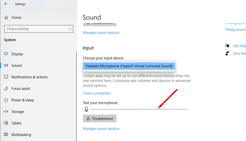 - Parlez dans votre microphone et regardez les niveaux de volume sous «Testez votre microphone». Vous devrez peut-être sélectionnerTestsous les paramètres d'entrée.