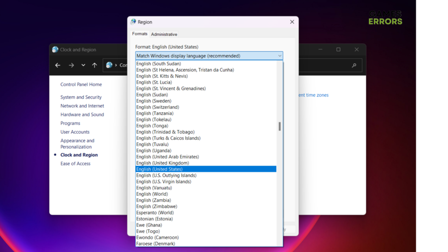 4. Maintenant, allez àFormatet sélectionnez Anglais (États-Unis) dans le menu déroulant.