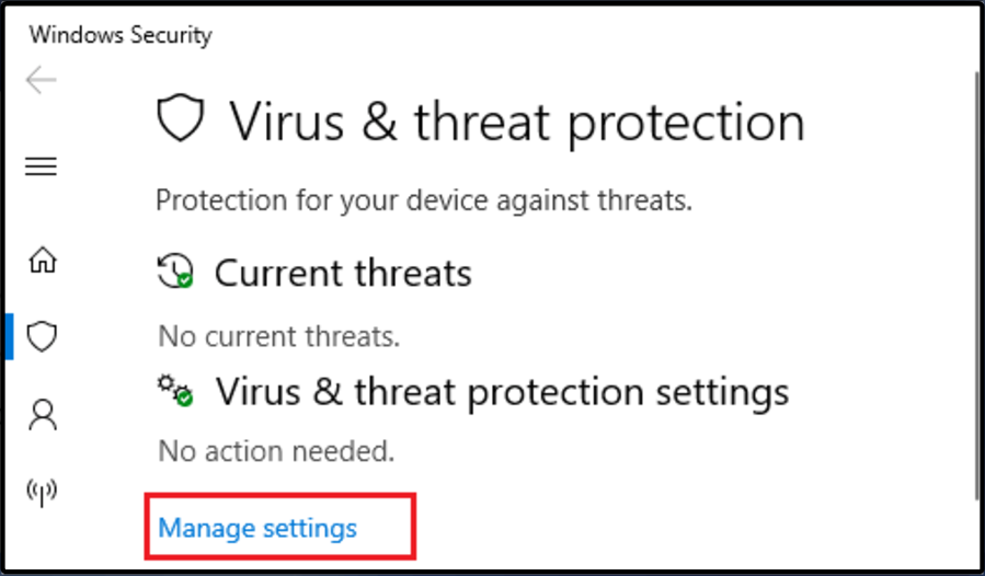 4. Cherchez leParamètres de protection contre les virus et les menacessection, puis choisissez Gérer les paramètres.