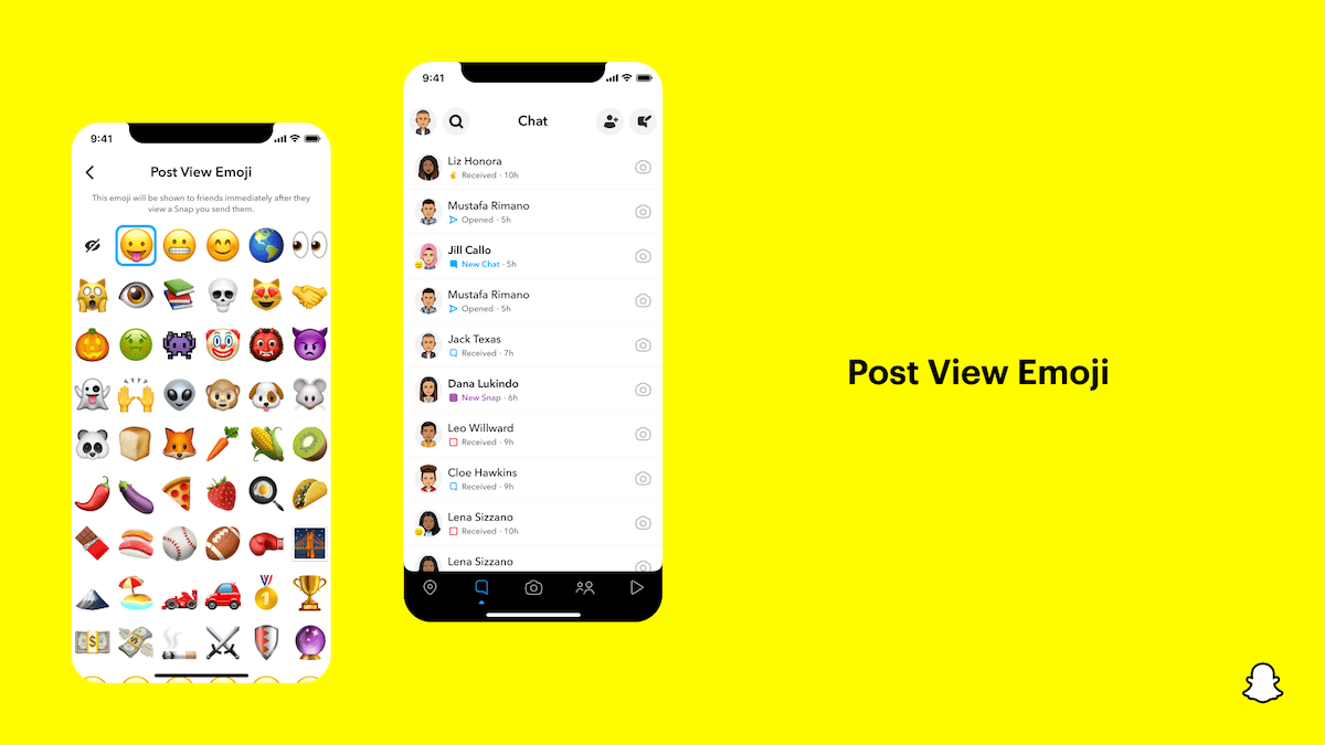 - Fonctionnalité emoji d'affichage des publicationsapporte une signature de signature aux clichés des utilisateurs. Ils peuvent choisir un emoji qui apparaîtra à la fin de leurs Snaps.