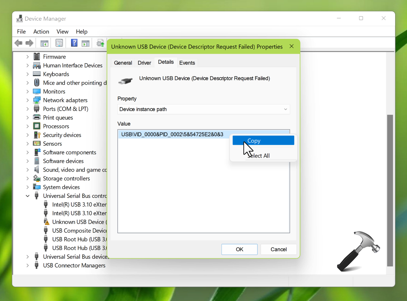 3.Sur la feuille de propriétés, accédez à l'onglet Détails et sous la liste déroulante Propriété, cliquez avec le bouton droit pour copier la valeur entière.