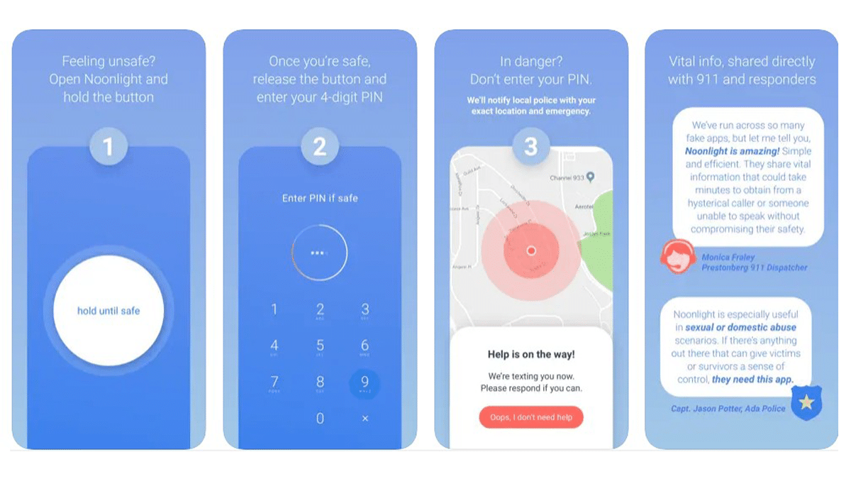 Noonlight assure votre sécurité personnelle lorsque vous ne vous sentez pas en sécurité ou en cas d'urgence immédiate. Il dispose d'une technologie avancée pour alerter le personnel d'urgence de l'emplacement exact de l'utilisateur en relâchant un bouton, et d'un « interrupteur homme mort » facile à utiliser pour les situations dangereuses, l'utilisateur peut appuyer et maintenir un bouton pour confirmer qu'il est en sécurité, et une réponse est déclenchée si les utilisateurs lâchent le bouton avant que l'utilisateur ne puisse le désarmer.