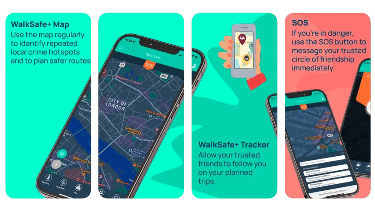 WalkSafe+ permet aux utilisateurs de créer un cercle d'amis de confiance avec lesquels ils peuvent partager leur position ainsi qu'une fonction de bouton SOS pour alerter tous les amis de leur cercle en cas d'urgence.
