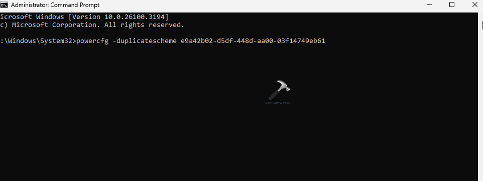 powercfg -duplicatescheme e9a42b02-d5df-448d-aa00-03f14749eb61