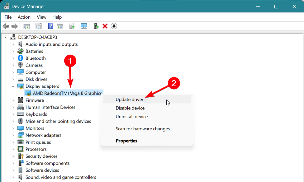 3. Faites un clic droit sur votre pilote graphique et sélectionnez leMettre à jour le piloteoption.