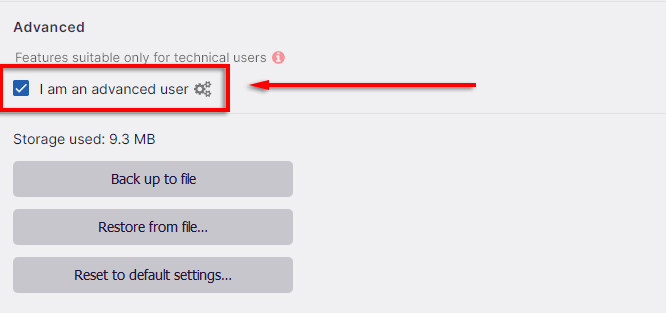 - Sous leParamètresonglet, cochez la case à côté de l'endroit où il est indiquéJe suis un utilisateur avancé.