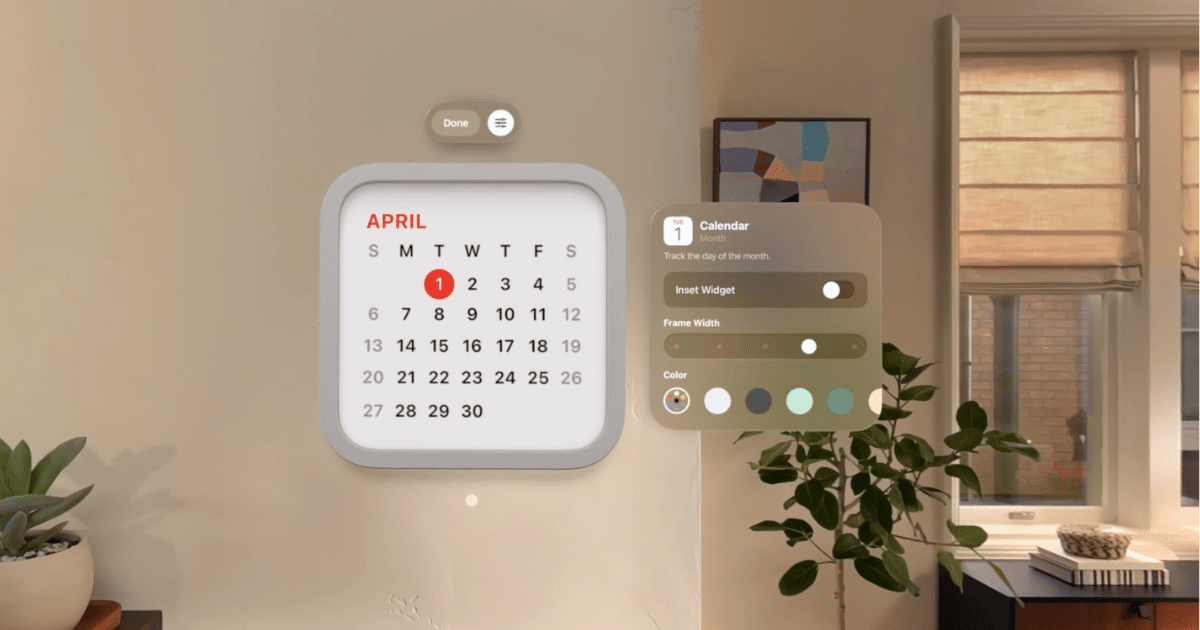 Les widgets ne se limitent plus aux écrans plats. Dans visionOS 26, ils deviennent des objets spatiaux que vous pouvez placer n’importe où dans votre espace physique, qu’il s’agisse d’une horloge accrochée à votre mur ou d’une fenêtre photo.