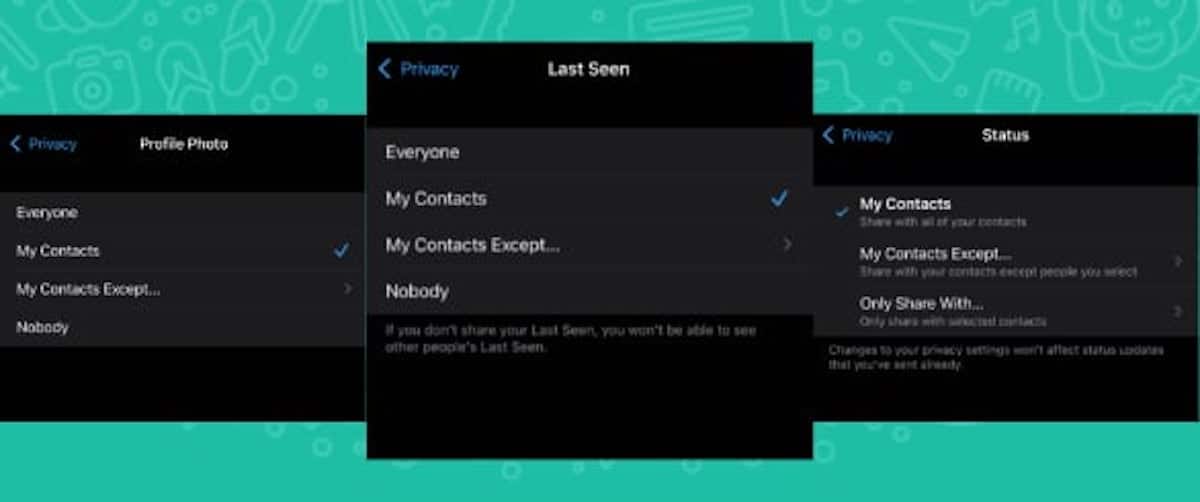 L'entreprise aajoutéun nouveau paramètre de confidentialité appelé «Mes contacts sauf» sur l'application pour choisir qui exclure de la dernière visite, de la photo de profil, de l'actualité ou du statut, ainsi que d'autres options.