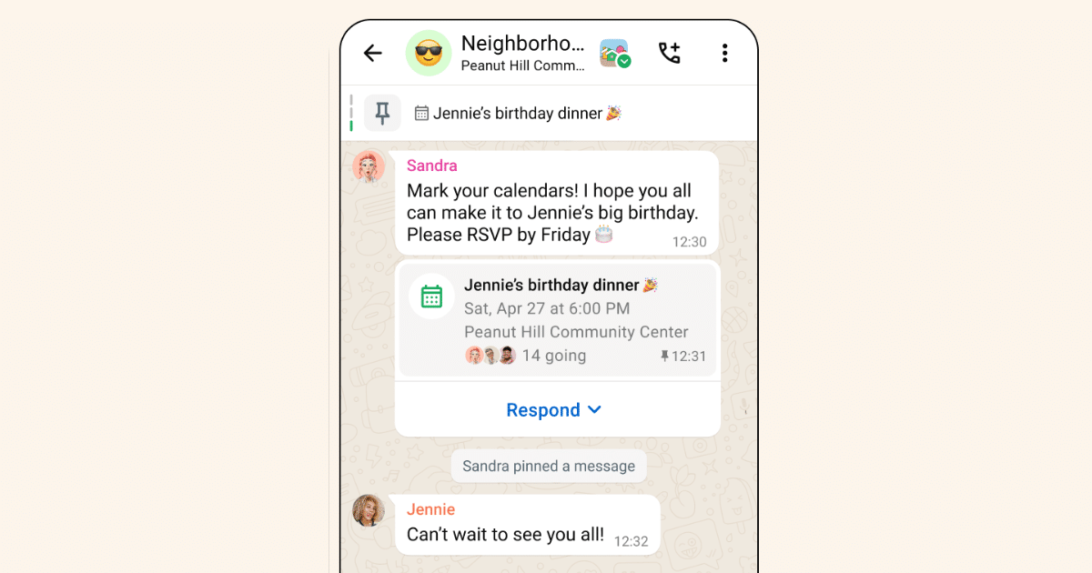 Lorsque cette fonctionnalité a été lancée en mai, WhatsApp l'a décrite comme un outil permettant de faciliter la planification de réunions, qu'il s'agisse de réunions virtuelles ou d'événements en personne comme des dîners d'anniversaire. Cette fonctionnalité est conçue pour simplifier la planification d'événements en l'intégrant directement dans la plateforme de messagerie largement utilisée, permettant aux utilisateurs de gérer leurs plannings sociaux et professionnels sans quitter l'application. La fonctionnalité a été progressivement déployée auprès des utilisateurs au cours des dernières semaines et devrait bientôt être disponible pour tous les utilisateurs.