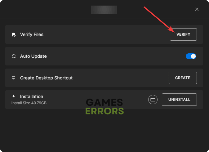 - Cliquez sur leVérifier l'intégrité des fichiers du jeubouton.